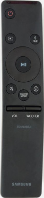 Styl najlepszych soundbarów Samsunga jest ustalony. Listwa została "obtoczona" maskownicą ze sztywnej metalowej siatki. Krawędzie są wyraźne, bez łagodnych zaokrągleń. Na górnej ściance wydzielono niewielki panel z czterema przyciskami sterującymi.