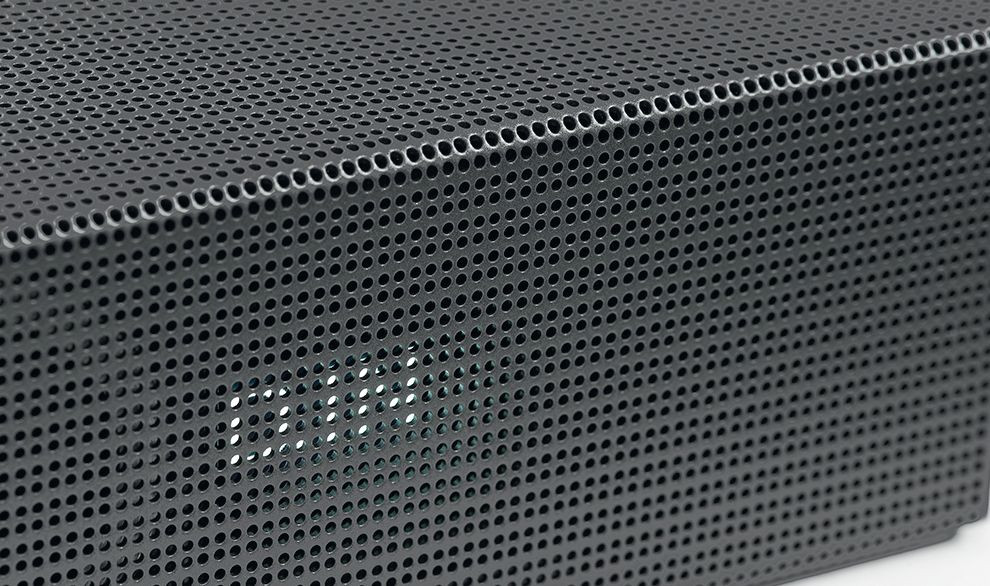 Maskownica jest w całości metalowa, w niektórych miejscach można dojrzeć obrysy zainstalowanych wewnątrz przetworników.