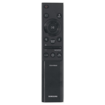 Nowy pilot jest jeszcze ciekawszy niż zeszłoroczny (od modelu HW-Q800A) – szczuplejszy, a przy tym zachowuje główne walory poprzednika (odchylane regulatory do regulacji głośności i poziomu kanału subwoofera).