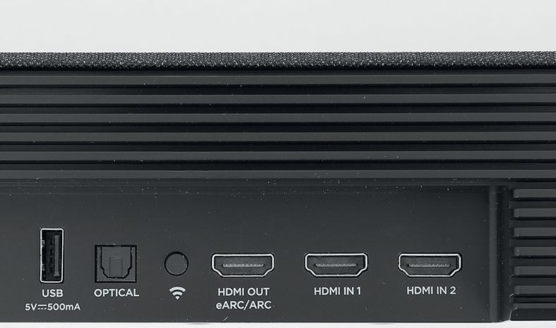 Wraz z nią TCL wprowadzi prawdziwą rewelację – automatyczny system kalibracji i korekcji akustyki AI Sonic, który wykorzystuje mikrofon wbudowany w telefon. Przygotowano aż dwa wejścia HDMI, jedno wyjście (z eARC), jest też wejście optyczne, a nawet złącze USB – do odczytu muzyki z nośników pamięci.