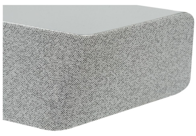 Głośnik subwoofera umieszczony jest na bocznej ściance (na co trzeba zwrócić uwagę przy ustawianiu) i ukryty za materiałową maskownicą. Pracuje w obudowie bas-refleks (doceniamy wyprofilowanie tunelu). Subwoofer jest oczywiście aktywny a komunikacja z listwą – bezprzewodowa.