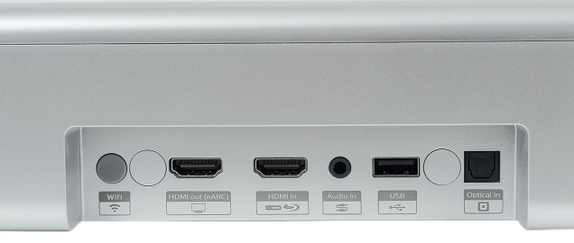 Możliwości przyłączeniowe Philips TAB8507 są kapitalne. Do dyspozycji mamy nie tylko wyjście HDMI (z dodatkiem eARC), ale także wejście w tym standardzie, a dodatkowo są wejście analogowe (mini jack) i cyfrowe (optyczne). Jest też USB do odczytu muzyki z nośników pamięci.