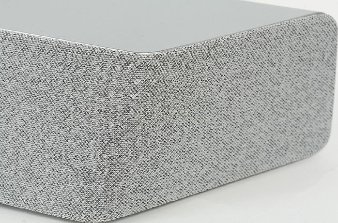 Głośnik subwoofera umieszczony jest na bocznej ściance (na co trzeba zwrócić uwagę przy ustawianiu) i ukryty za materiałową maskownicą. Pracuje w obudowie bas-refleks (doceniamy wyprofilowanie tunelu). Subwoofer jest oczywiście aktywny a komunikacja z listwą – bezprzewodowa.
