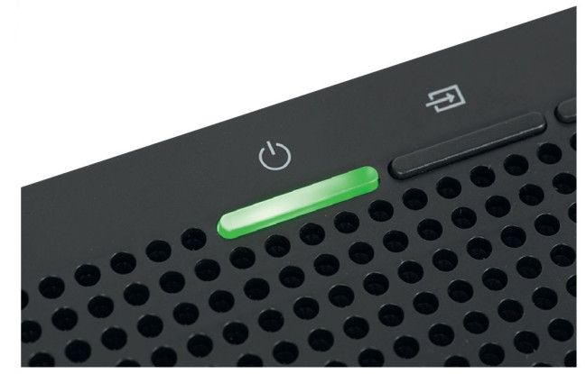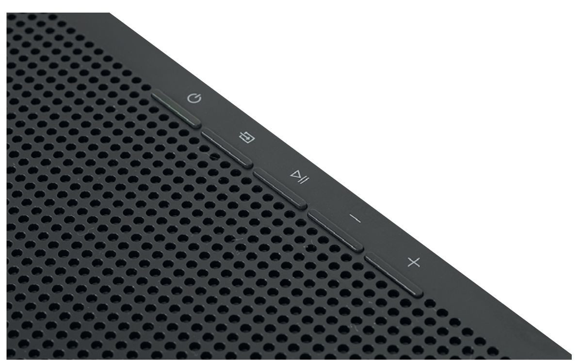 Sterowanie (regulacja głośności, zmiana wejść, także odtwarzanie np. ze źródła BT) jest możliwe przyciskami z górnej części obudowy. Przycisk włączający zasilanie ma diodę – informuje różnymi kolorami o standardzie dekodowania wielokanałowego.