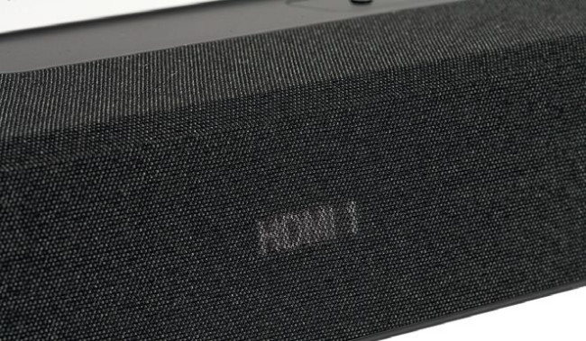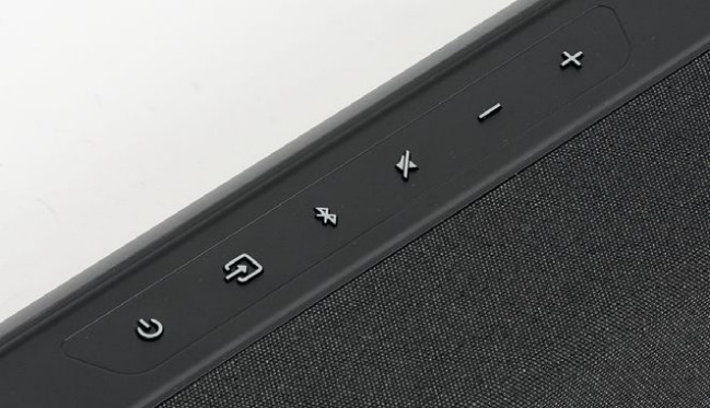 Listwa ma aż 115 cm szerokości, jej większą część pokrywa tekstylna maskownica, przyciski sterujące umieszczono na górnej ściance. Zza maskownicy przebija światło niewielkiego wyświetlacza; nie będzie ściągał uwagi, ale jego czytelność jest dobra. Poinformuje nas o poziomie głośności i wybranym źródle, a także o innych funkcjach, np. trybach przestrzennych.