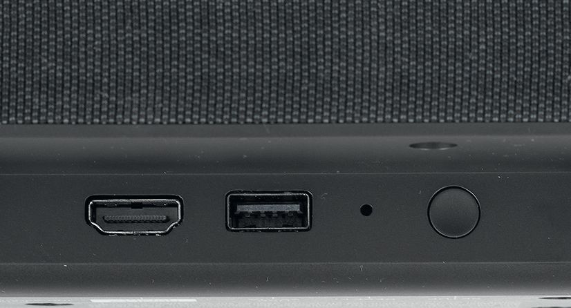 Na tylnej ściance znajduje się praktycznie tylko jedno gniazdo – HDMI z kanałem zwrotnym eARC. Jest też USB, ale tylko jako źródło zasilania 5 V dla urządzeń zewnętrznych (jakich? – Sennheiser nie precyzuje).