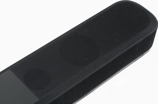 Listwa Sennheiser Ambeo Plus ma szerokość 105 cm, ale wygląda dość dyskretnie i subtelnie; jej boczne ścianki są zaokrąglone, a większa część korpusu jest osłonięta tekstylną maskownicą, z wyjątkiem górnej ścianki, w centrum której umieszczono panel sterujący obejmujący komplet mikrofonów (do kalibracji oraz sterowania głosowego), a na skrajach metalowe maskownice.