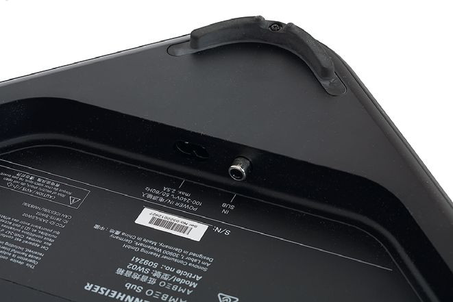 Głośnik ma średnicę 20 cm i celulozową membranę. Obudowa jest zamknięta, jak w większości współczesnych subwooferów aktywnych, chociaż w tych towarzyszących soundbarom zwykle stosowany jest bas-refleks, co zwiększa efektywność układu akustycznego i pozwala "oszczędzać" na dostarczanej mocy, potrzebnej do intensywnej korekcji charakterystyki systemu zamkniętego. Sennheiser Ambeo Sub przejawia spore ambicje i potrzebuje do tego mocy – jego wzmacniacz ma aż 350 W.