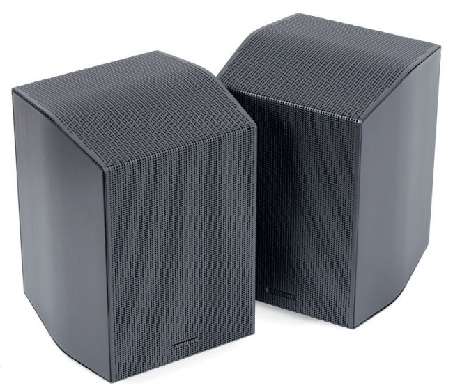Na bokach znajdują się dwa przetworniki szerokopasmowe, ustawione pod różnymi kątami, obsługujące kanały efektowe boczne i tylne (w podstawowej warstwie dolnej).