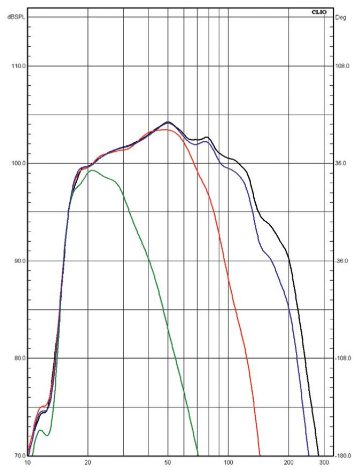 Laboratorium Przy najniższym filtrowaniu, strojeniu i korekcji ”extended” -6 dB przy 13 Hz! Niewiele wyższa dolna częstotliwość graniczna w trybie standardowym i zamkniętym (-6 dB przy 15 Hz). Filtrowanie dolnoprzepustowe w zakresie 32–130 Hz. Maksymalny poziom 120 dB. Subwoofer subsoniczny i uniwersalny.