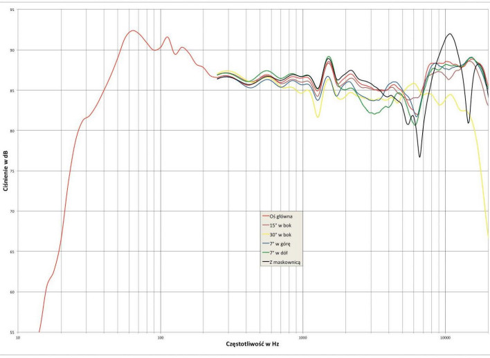Średniotonowa część pasma wygląda bardzo dobrze, warto zwrócić uwagę na utrzymywanie wysokiego poziomu w kierunku niskich częstotliwości, żadnego osłabienia przy kilkuset hercach - tak procentuje nie tylko dobre zestrojenie układu, ale też zastosowanie silnej sekcji średniotonowej, złożonej aż z trzech przetworników.