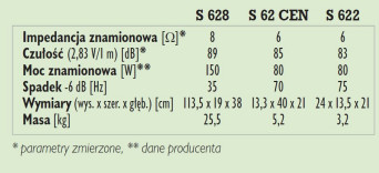 Głośnik surroundowy S 622 nie może się już pochwalić ani wysoką mocą, ani wysoką czułością, ani bardzo szerokim pasmem, ani wyrównaną charakterystyką - ze swoimi możliwościami nie aspiruje do tytułu wysokiej klasy minimonitorka, ale w przeznaczonej mu w tym systemie roli "surroundu" będzie się spokojnie wyrabiał, trzeba też przyznać, że ze spadkiem -6 dB przy ok. 75 Hz ma odrobinę basu.