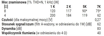 | Moc znamionowa (1% THD+N, 1 kHz) [W] 8 Ω 2K | 117 |