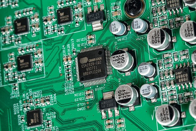W tylnej części obudowy umieszczono moduł z obwodami cyfrowymi. Wygląda już dość typowo, z popularnymi interfejsami wejściowymi HDMI oraz dekoderem surround Cirrus Logic CS49844A (stosują go "wszyscy"). Przetworniki C/A to również Cirrus – CS42528, w niewielkiej kości mieszczący aż osiem konwerterów C/A i dwa A/C (24 bit/192 kHz).
