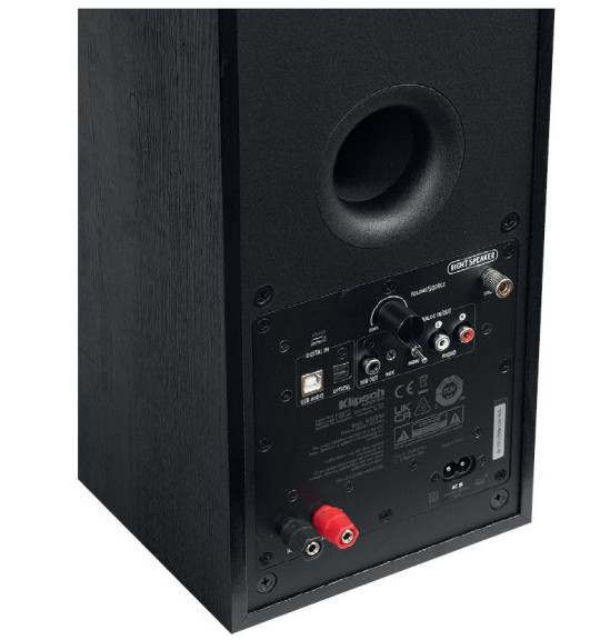 To układ dwudrożny, dla Klipscha typowy (niezależnie od wielkości) – z wyskotonową tubą o skomplikowanym profilu Tractrix i prostokątnym wylocie oraz nisko-średniotonowym z membraną w kolorze miedzi.