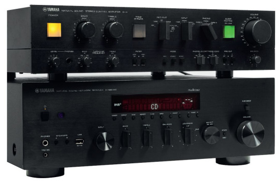 R-N803D w towarzystwie przedwzmacniacza C-4 z 1979 roku; urządzenia dzieli niemal 40 lat, ale łączy wzornictwo niektórych elementów. Mając takie tradycje, Yamaha czuje się w stereo bardzo pewnie.