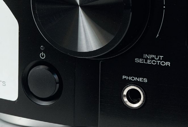 Układ elementów frontu z dwoma sporymi pokrętłami i ulokowanym pomiędzy nimi wyświetlaczem też jest dobrze znany. Z przodu jest też złącze USB oraz wyjście słuchawkowe. Gdyby nie pokrewieństwo z wielokanałową serią NR, bogactwo tylnej (tak niewielkiej) ścianki mogłoby być sporym zaskoczeniem.