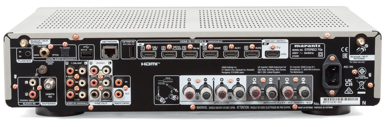 Marantz przedstawia Stereo 70s jako amplituner kina domowego, tyle że stereofoniczny. Nie mam nic przeciwko takiej formule, trzeba tylko zwrócić uwagę, podobnie jak w Denonie, że urządzenie nie ma dekoderów surround, nie przyjmie więc żadnych tego typu sygnałów (a ewentualnie mogłoby, aby symulować jakieś paraatmosowe "przestrzenie" nawet za pomocą pary kolumn).