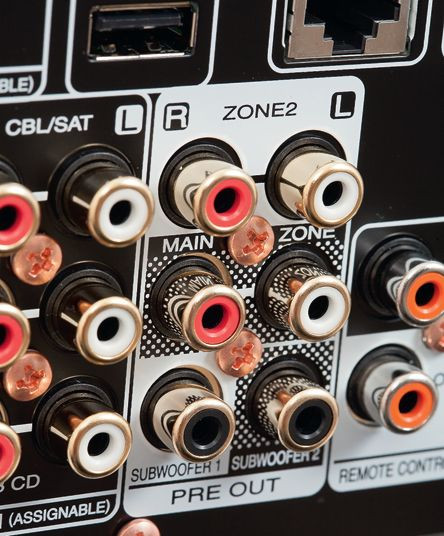 Wejścia cyfrowe – jedno współosiowe i jedno optyczne. Wyjście z przedwzmacniacza pozwoli podłączyć zewnętrzną końcówkę mocy i dwa subwoofery, jest też wyjście do zdalnej strefy, a na froncie – USB-A dla plików i 6,3-mm wyjście słuchawkowe.