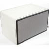 Jakość materiałów użytych do wykonania "skrzynki" jest bardzo dobra i sprytnie skomponowana. Przód w całości wypełnia metalowa, siatkowa maskownica. Wydaje się, że jest tak skrzętnie spasowana z krawędziami, że nie sposób jej zdjąć.