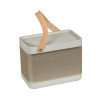 Vifa Copenhagen ma oryginalny kształt sporej torebki, lecz najbardziej charakterystyczny jest materiał, którym zostało pokryte. Tkanina jest solidna, jak obszycie mebla, i dostępna w sześciu kolorach: antracyt, żółty, czerwony, szary, jasnoniebieski i ciemnoniebieski.
