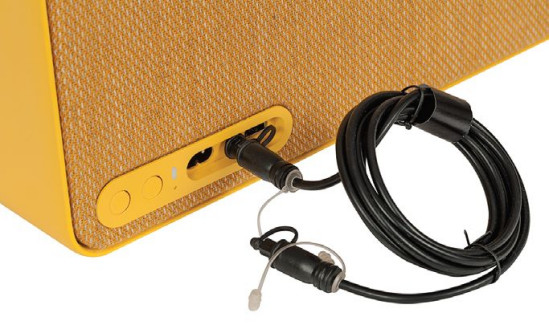 Gniazdo mini-jack jest nietypowe; oprócz możliwości podłączenia urządzenia przenośnego z sygnałem analogowym, jest to także wejście cyfrowe przyjmujące sygnał o rozdzielczości 24 bit/192 kHz; w komplecie otrzymujemy przewód światłowodowy wraz ze stosownymi przejściówkami.