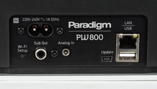 Paradigm PW800, podobnie jak pozostałe urządzenia z rodziny PW, nie ma interfejsu Bluetooth, transmisja odbywa się przez sieć - LAN lub WLAN. Producent deklaruje strumieniowanie plików 24 bit/192 kHz (przez przewodowy LAN).