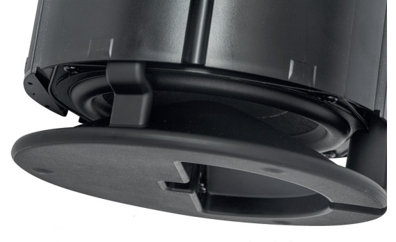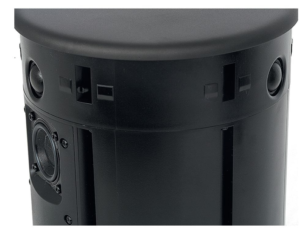 Koncepcję 360 dopełniają dwa kolejne głośniki wysokotonowe, więc w sumie trzy tweetery ustawiono osiami co 120 stopni. Przetwarzanie najniższych częstotliwości to z kolei zadanie dla 12-cm niskotonowego ulokowanego w podstawie (odprowadzeniu fali służy wspomniana szczelina i dyfuzor wewnątrz).