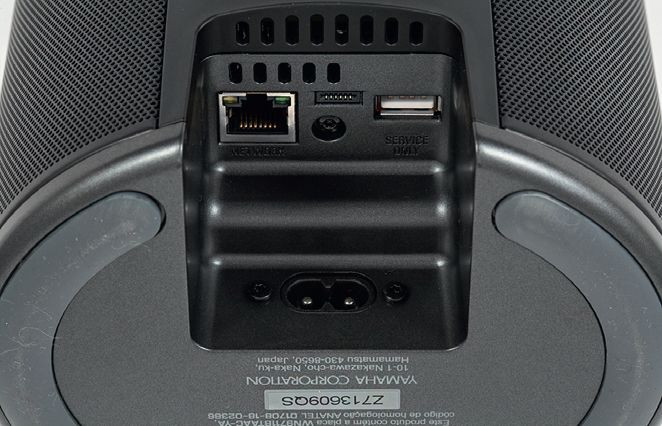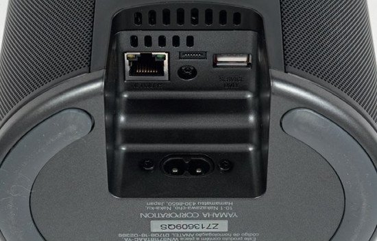 Yamaha MusicCast 20 komunikuje się z siecią Wi-Fi (także 5 GHz), BT (kodowanie SBC i AAC), z tyłu jest gniazdo sieciowe LAN, a także zasilające 230 V. Jest też złącze USB, jednak wyłącznie do celów serwisowych.