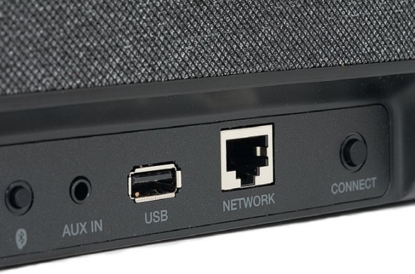 Niewiele urządzeń tej kategorii może się pochwalić tak rozwiniętym (może nawet na wyrost typowych potrzeb) panelem przyłączeniowym. Jest LAN (Denon Home 250 obsługuje też Wi-Fi), wejście analogowe i złącze USB (do odtwarzania plików muzycznych.