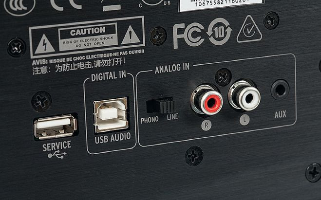 Klipsch The Three II jest za to mistrzem w tradycyjnej obsłudze źródeł przewodowych. Wejście analogowe (RCA oraz mini-jack) może pracować w dwóch trybach – liniowym lub gramofonowym MM (wyboru dokonujemy przełącznikiem na tylnej ściance); to jedyny taki przypadek w tym teście.