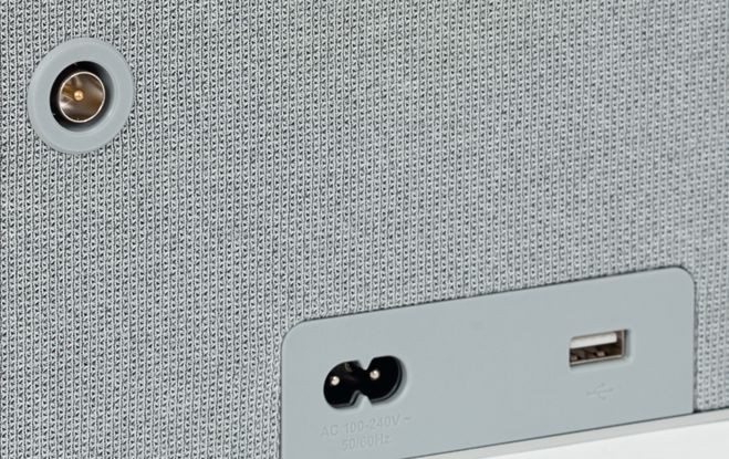 Wzmacniacz jest dwukanałowy, o mocy 2 x 20 W, co oznacza, że podział sygnału między obydwa przetworniki prowadzi zwrotnica pasywna; nie wyklucza to zastosowania DSP do korekcji charakterystyki częstotliwościowej, zwłaszcza w zakresie niskich częstotliwości. Z tyłu jest też gniazdo zasilania, wejście antenowe (dla FM oraz DAB) oraz złącze USB dla pamięci z plikami muzycznymi.