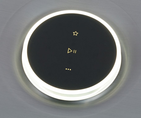 Pokrętło jest podświetlane. Gdy je obracamy, regulujemy głośność, a płaszczyzna dotykowa (z czujnikiem zbliżeniowym) pozwala na kompleksowe sterowanie urządzeniem: zmianę wejść, sterowanie odtwarzaczem, wywoływanie listy ulubionych utworów. Jest też tradycyjny pilot (znajduje się w zestawie) oraz firmowa aplikacja mobilna.