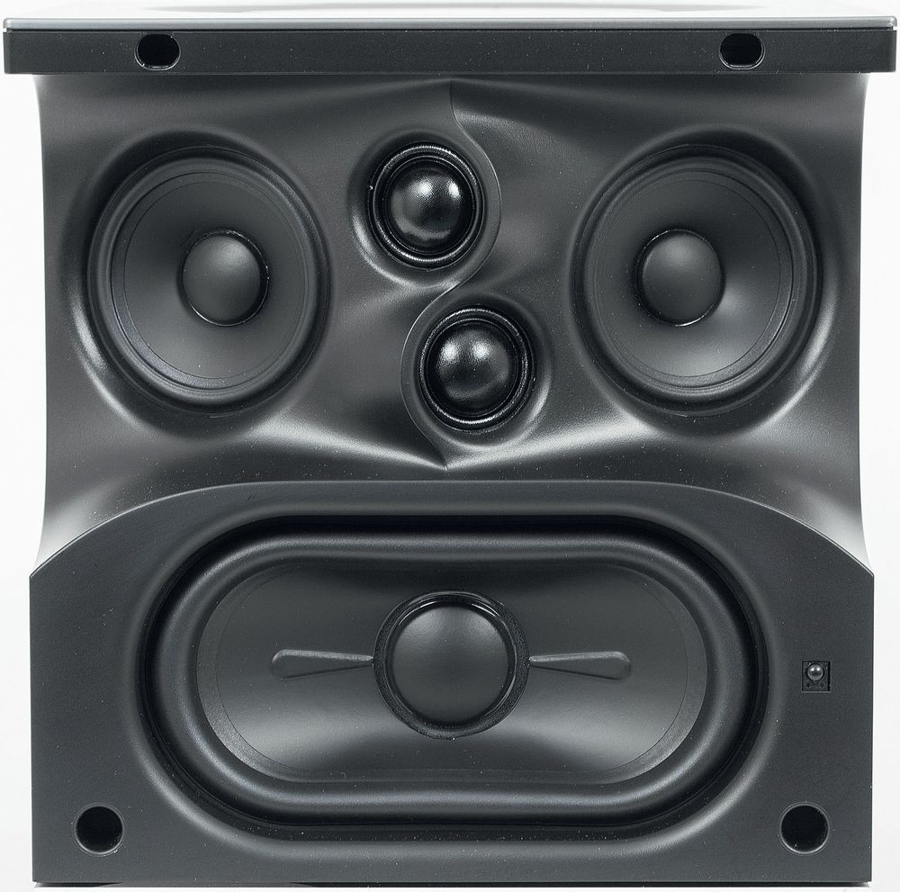 Po zdjęciu maskownicy (obejmującej nie tylko przód, ale i dwie boczne ścianki) wyłania się atrakcyjna forma z licznymi przetłoczeniami i krzywiznami. W każdym kanale pracują niezależnie sekcje dwudrożne, złożone z 5,5-cm przetwornika średniotonowego i 25-mm miękkiej kopułki.