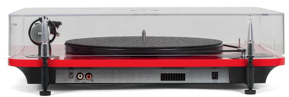 Panel przyłączeniowy umieszczono w lekkim zagłębieniu, pod plintą, wyjścia RCA umożliwiają stosowanie dowolnych interkonektów, jest też trzpień masy. Elipson zastosował konstrukcję bez elementów pośrednich, płaski pasek napędowy poprowadzono na zewnątrz dużego, głównego talerza.