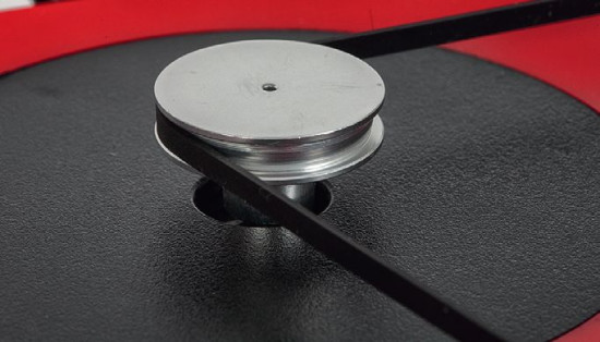 Prawie wszystko jest na swoim miejscu - talerz, wkładka, a nawet przeciwwaga! Trzeba tylko założyć pasek napędowy.