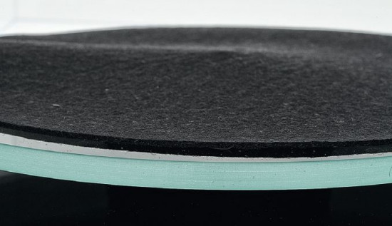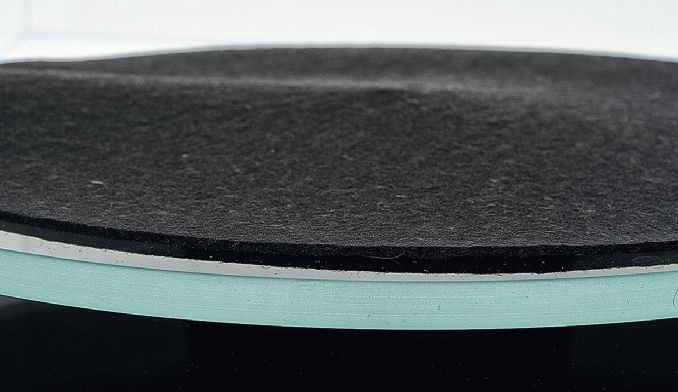 Talerz Regi jest wykonany z przezroczystego szkła optycznego, prezentuje się znakomicie, nie przeszkadza mu w tym nawet filcowa mata.