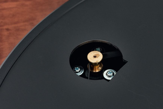 Talerz ma średnicę 30 cm - to aluminowy odlew z dodatkowym, wewnętrznym kołnierzem na pasek. Po umieszczeniu talerza należy sięgnąć przez wąskie wycięcie do paska napędowego i założyć go na rolkę silnika. Rozwiązanie jest podobne do zastosowanego w Turn 3 Reloopa. Płytę kładziemy na filcowej macie.