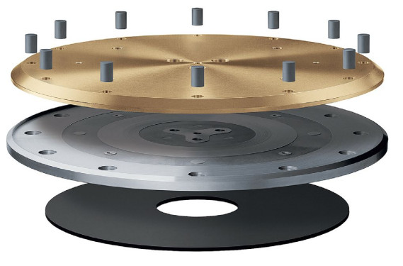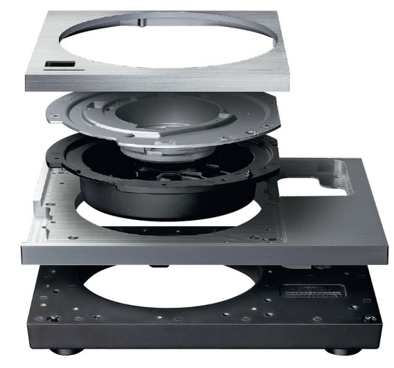 Talerz ma specjalną konstrukcję, służącą zarówno stabilizacji obrotów (masa), jak i tłumieniu wibracji, które jednak mogą przenosić się przez oś napędu. Warstwę mosiężno-wolframową umieszczono na aluminiowym pierścieniu i dodano gumową powłokę.