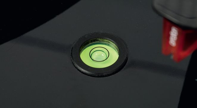 Istotnym elementem kalibracji gramofonu, nawet w urządzeniu fabrycznie ustawionym jak MMF-7.3, jest jego dokładne wypoziomowanie. Zadanie to ułatwia osadzona w górnej platformie poziomica – detal, a jakże przydatny.