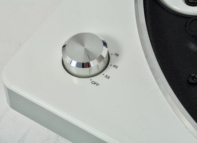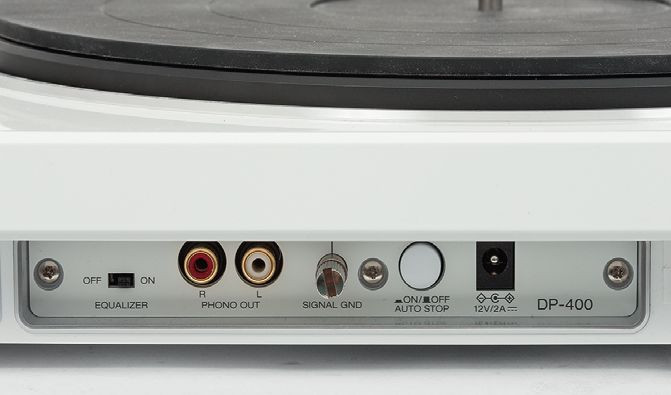 W lewym dolnym narożniku plinty znajduje się włącznik i jednocześnie przełącznik prędkości obrotowej; DP-400 obsługuje nie tylko standardy 33,3 obr./min oraz 45 obr./min, ale także egzotyczny dzisiaj wariant 78 obr./min.