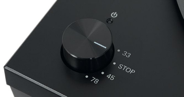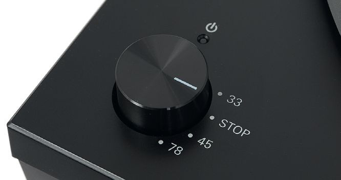 Audio-Technica AT-LP5X obsługuje nie tylko dwie główne prędkości obrotowe (33,3 i 45), ale też 78 obr./min. Wyboru dokonujemy pokrętłem, które pełni też rolę wyłącznika zasilania.