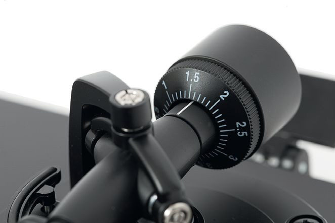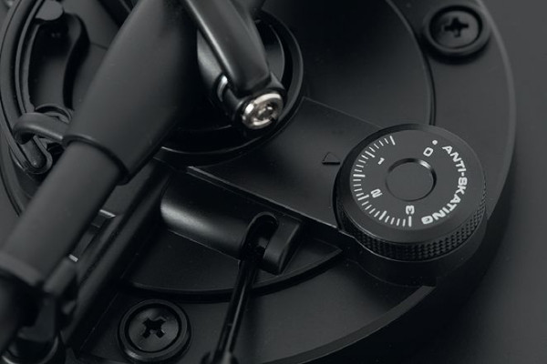 Nie musimy mocować się z paskiem, wystarczy jedynie ułożyć talerz na głównej osi i założyć matę. Wkręcamy główkę (geometria wkładki jest ustawiona) oraz przeciwwagę, którą regulujemy siłę nacisku igły. Na koniec pozostaje anti-skating (wygodne pokrętło).