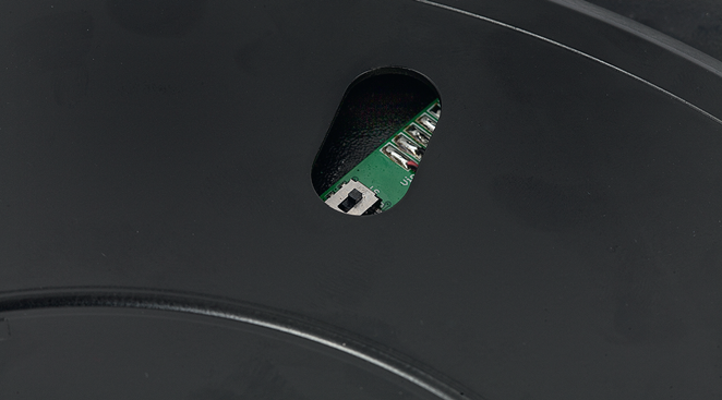 Talerz jest metalowy, uwagę zwraca staranność wykonania strony wewnętrznej, podklejonej gumowym wkładami – służy to oczywiście tłumieniu drgań.