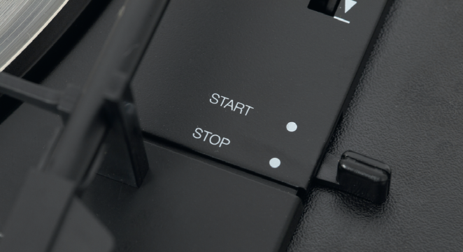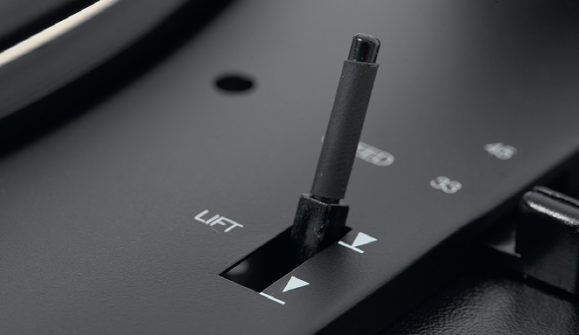 Jest też tryb manualny, obok włącznika automatycznego znajduje się dźwignia windy opuszczającej ramię; gdy przesuniemy je (ręcznie) nad początek płyty, gramofon sam uruchomi obroty.
