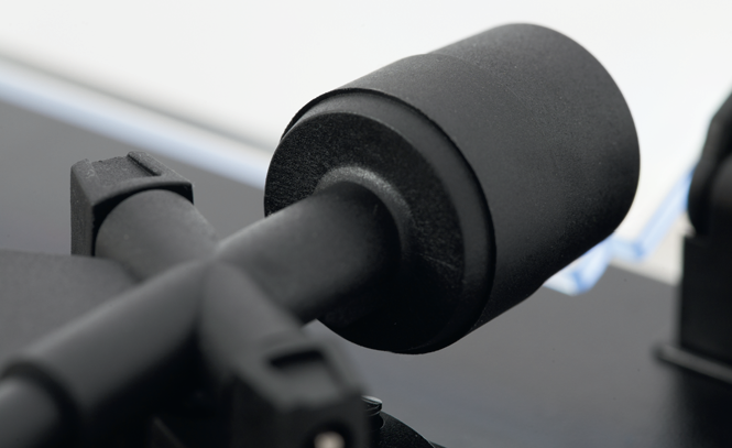 Ramię ma efektywną długość 8,3 cala, prostą rurkę z kątową główką. Ale Pro-Ject nie byłby sobą, gdyby nie wprowadził chociaż trochę swojego ulubionego materiału – włókna węglowego, którym usztywniono główkę.