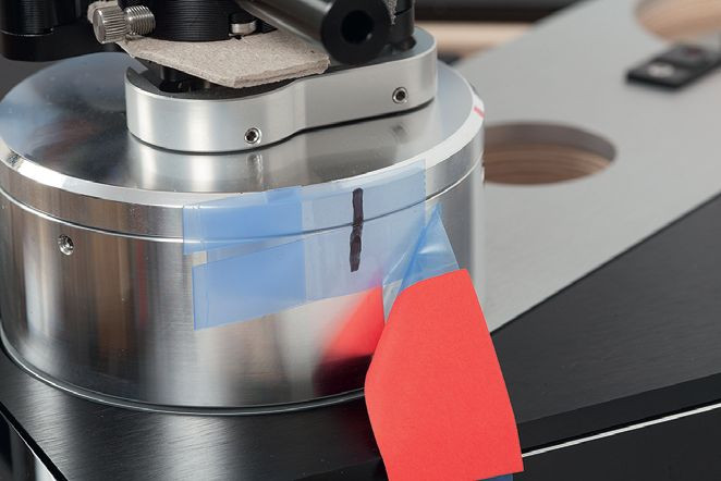 Zaczynamy od ustawienia plinty, do której należy zainstalować ramię (i okablować je) oraz uzbroić łożysko (wraz z jego naoliwieniem). Założenie paska wymaga trochę większej gimnastyki niż zwykle, z uwagi na potężne, rozpychające się magnesy w podstawie i subtalerzu. Ramię i wkładka są już wstępnie wyregulowane.