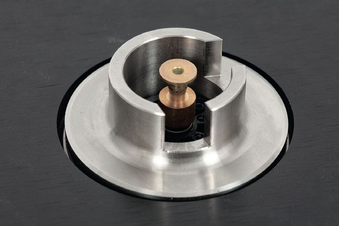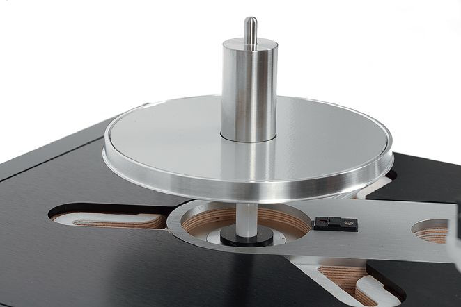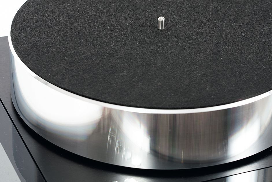 Potężny, aluminiowy talerz jest niemal tak gruby, jak podstawa. Obraca się (a właściwie niemal lewituje) na łożysku magnetycznym, które też znamy z projektów ClearAudio.