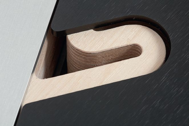 Prostokątną podstawę, dość klasyczną w formie, wykończono łącząc powierzchnie matowe z panelami na wysoki połysk. W centralnej części frontu umieszczono logo firmy, podświetlane tym razem na biało (a nie na zielono).