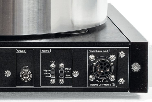 Na tylnej ściance oprócz wielostykowego, okrągłego złącza zasilania (znamy go z urządzeń Naima) znajdują się jeszcze trzpień uziemiający, przełączniki do regulacji intensywności podświetlenia logo i systemu automatycznego wyłączania.